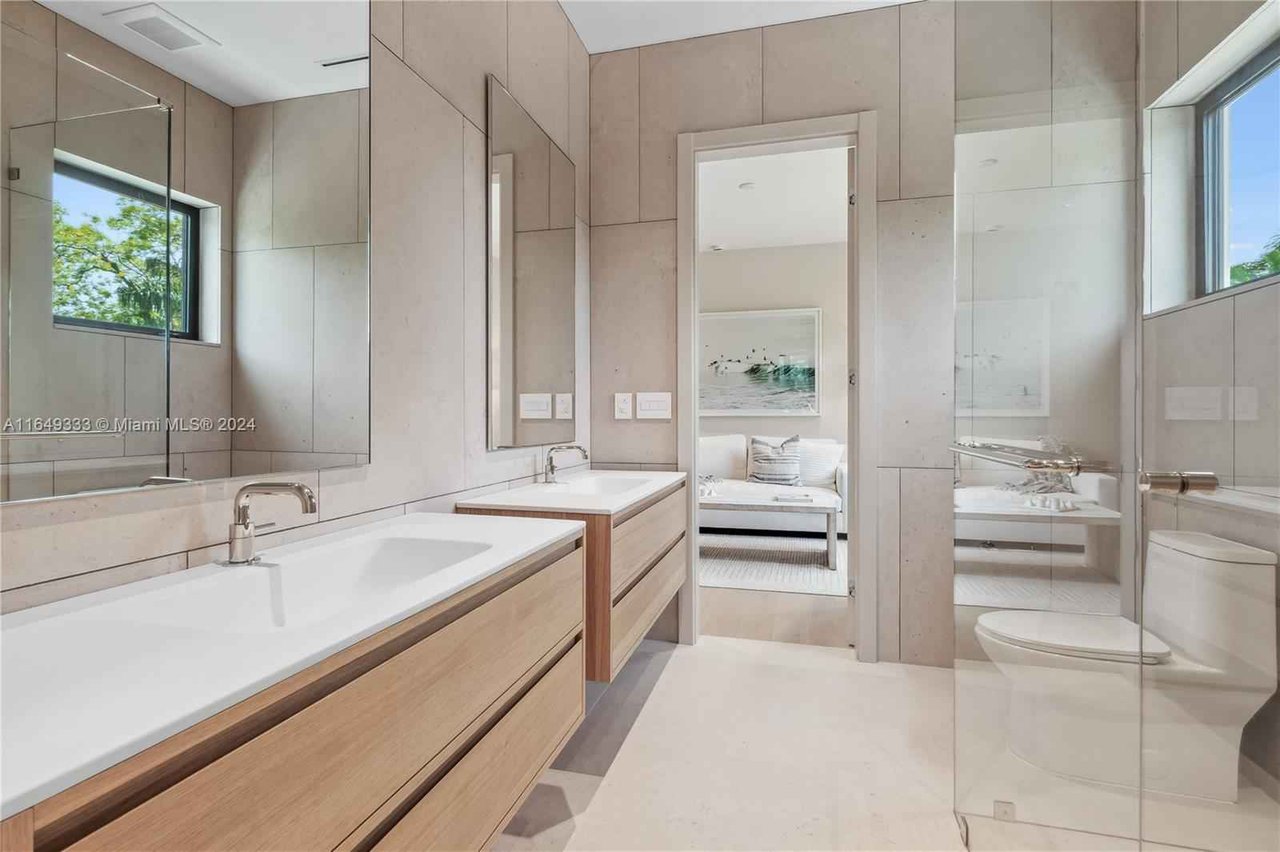 Located in the prestigious Venetian Islands in Miami Beach, this stunning modern-design home features 5 bedrooms, 5.5 bathrooms, under 3,600 SF of luxurious living space. This gated residence boasts custom-made wood panels, a formal living and dining area that opens to a rear terrace and pool. The open-concept kitchen is adorned with top-of-the-line appliances and custom cabinetry and it seamlessly connects to an informal living room. The contemporary design is further enhanced by elegant limestone and wood flooring throughout. Schedule a private viewing now to make this stunning new construction home yours!